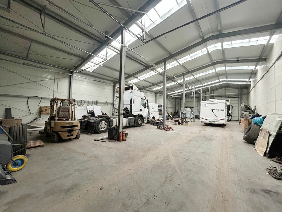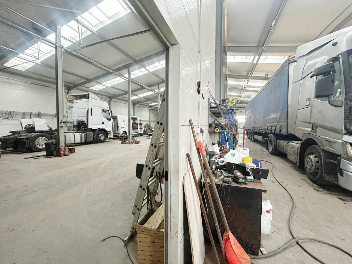 W części 300 m² znajduje się kanał warsztatowy dla pojazdów ciężarowych