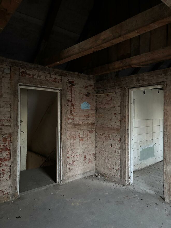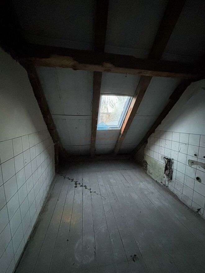Obecnie przestrzeń pokoju i pomieszczeń pod skosami została połączona i otwarta, co daje możliwość zaadaptowania jej na 2-3 pokoje.